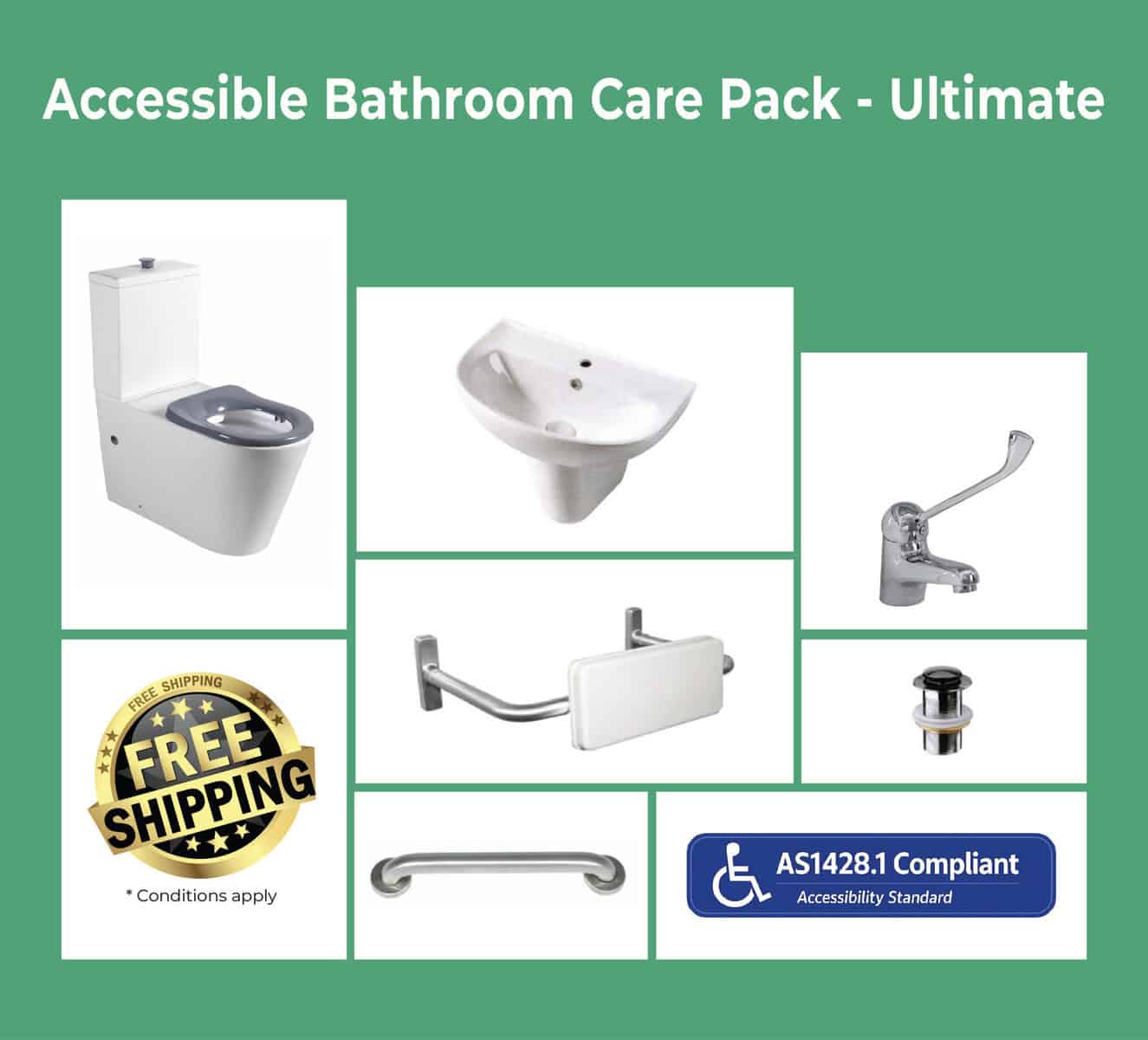 This package has been carefully assembled to provide everything required for an AS1428.1 compliant accessible bathroom, offering excellent value and peace of mind. Perfect for homeowners, care providers, and facility managers, it ensures you have all the essential fixtures in one bundle — saving money compared to purchasing items individually.