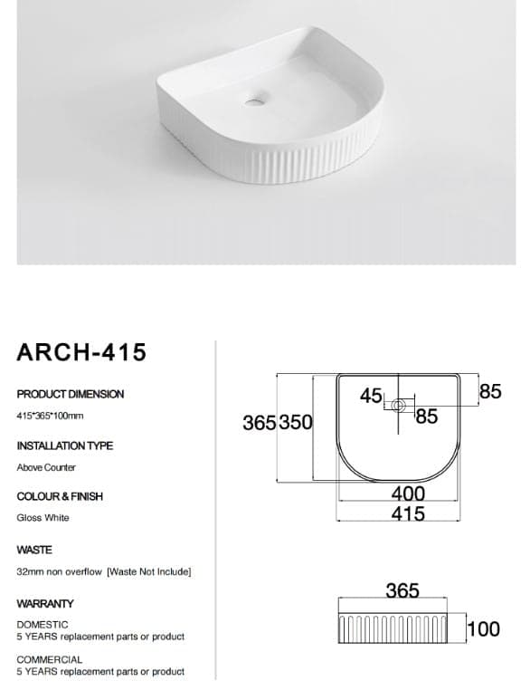 - Arch shaped fluted designed