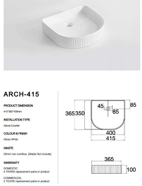 - Arch shaped fluted designed