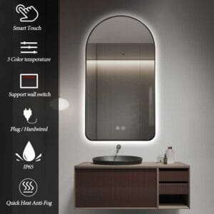Designed for both style and performance, it features dimmable LED lighting with adjustable colour temperatures, anti-fog technology, and a smart touch control panel—making it a luxury wall mirror that suits modern, minimalist, and industrial interiors.