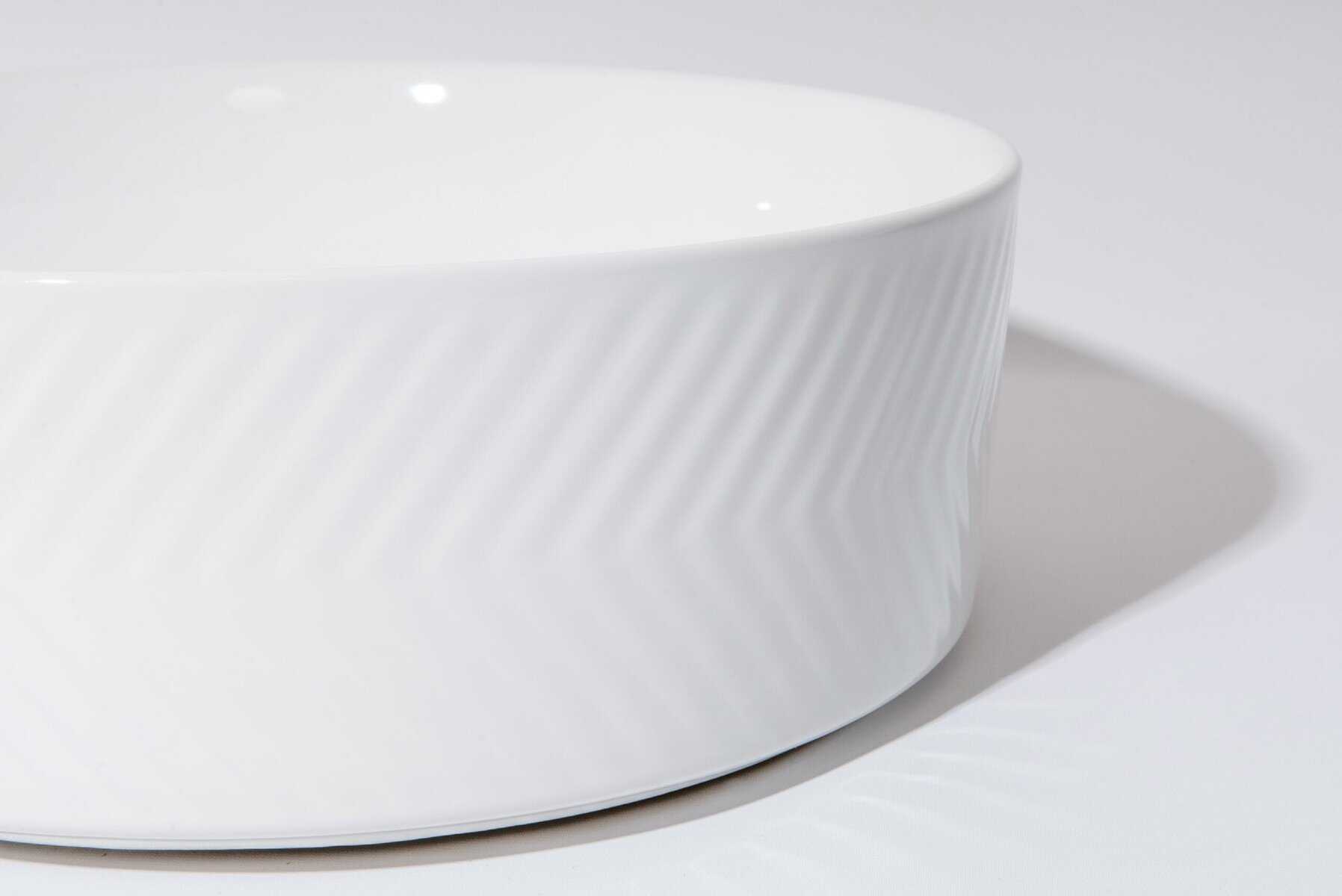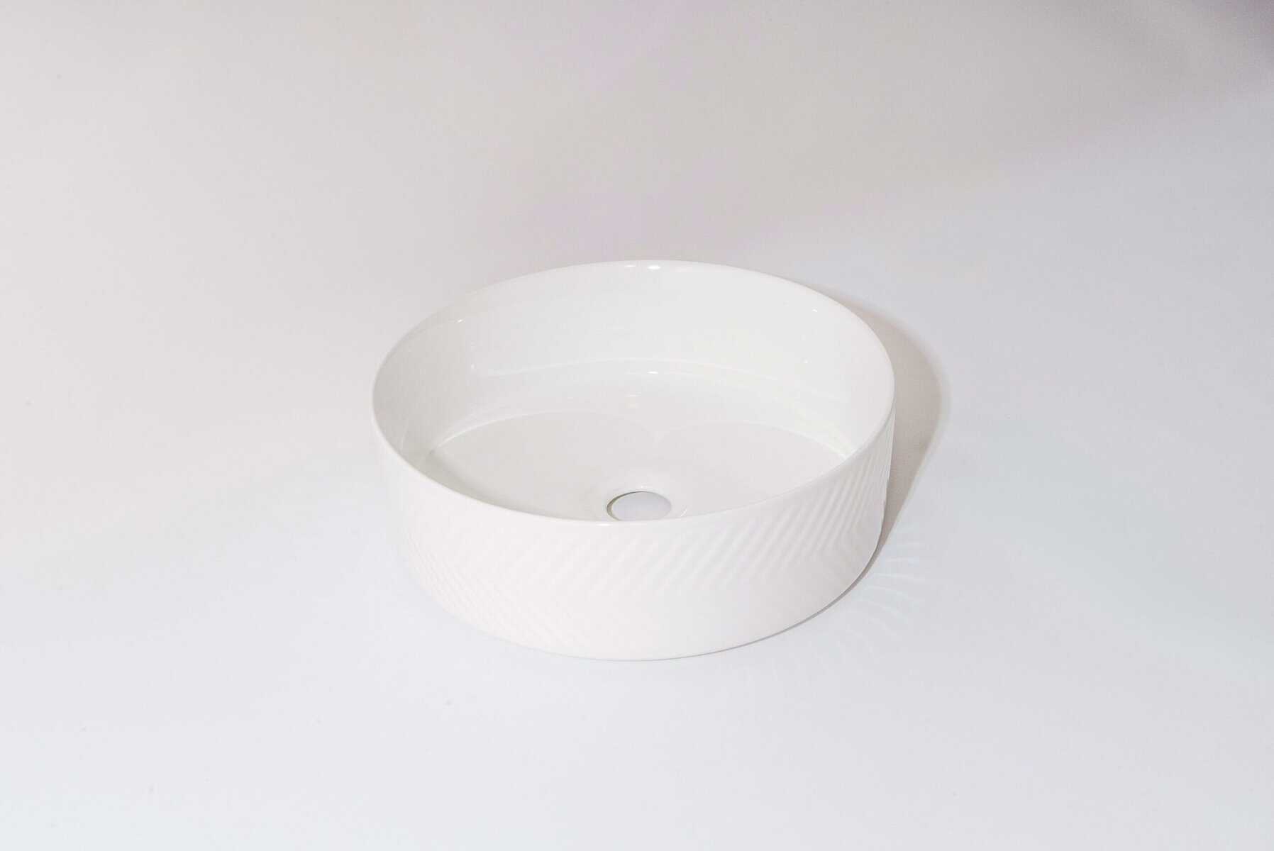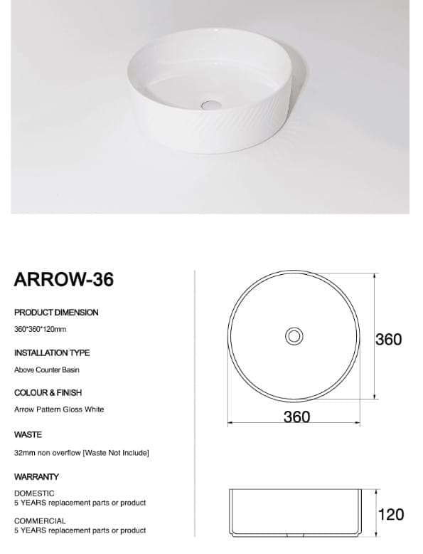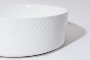 Subtle texture, bold presence — the Arrow-36 is crafted from fine ceramic with a sleek white finish and unique herringbone-style surface detailing. Designed to bring both visual interest and timeless elegance to your bathroom, this above-counter basin is perfect for modern interiors seeking a refined statement piece.