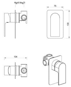 Beki Shower Mixer - Square Plate - TRIM KIT ONLY- French Gold quantity