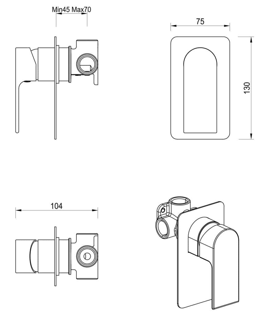 / Beki Shower Mixer – Square Plate – TRIM KIT ONLY- French Gold