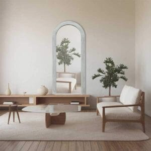 The Besty Arched Mirror offers a perfect blend of classic charm and modern sophistication, featuring a solid wood frame in a sleek white finish. The striking arched design adds a unique architectural touch to your space, making it an eye-catching focal point. Its large 80cm x 180cm size creates a sense of openness, brightening rooms while enhancing the flow of natural light. Perfect for creating spaciousness and style in various interiors, this mirror is the ideal addition to your bedroom, hallway, or living area.