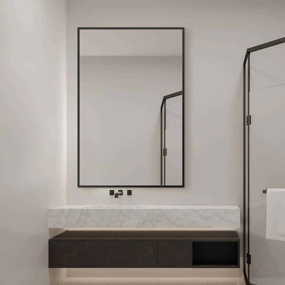Crafted from robust aluminium alloy and finished in a sophisticated black, the mirror’s straight edges deliver a clean, contemporary look that complements any interior. Whether you choose to hang it on the wall or lean it against a surface, enjoy a crystal-clear, high-quality reflection that adds both functionality and a stylish focal point to your space.