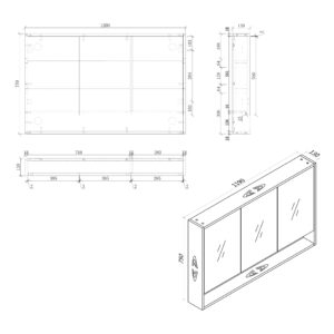 For 1500mm vanity sizes (enquiry only), two 750mm mirror cabinets are supplied and installed side by side. A timber divider will be visible between the mirrors due to the cabinet configuration.