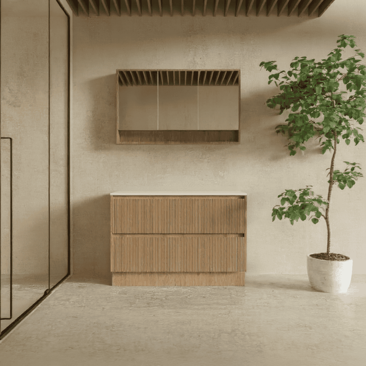 The Bondi fluted vanity is designed to deliver both visual impact and everyday usability. Its textured natural wood finish adds warmth to the bathroom while maintaining a modern aesthetic suitable for contemporary interiors.