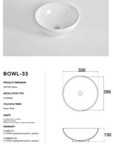 - Countertop basin