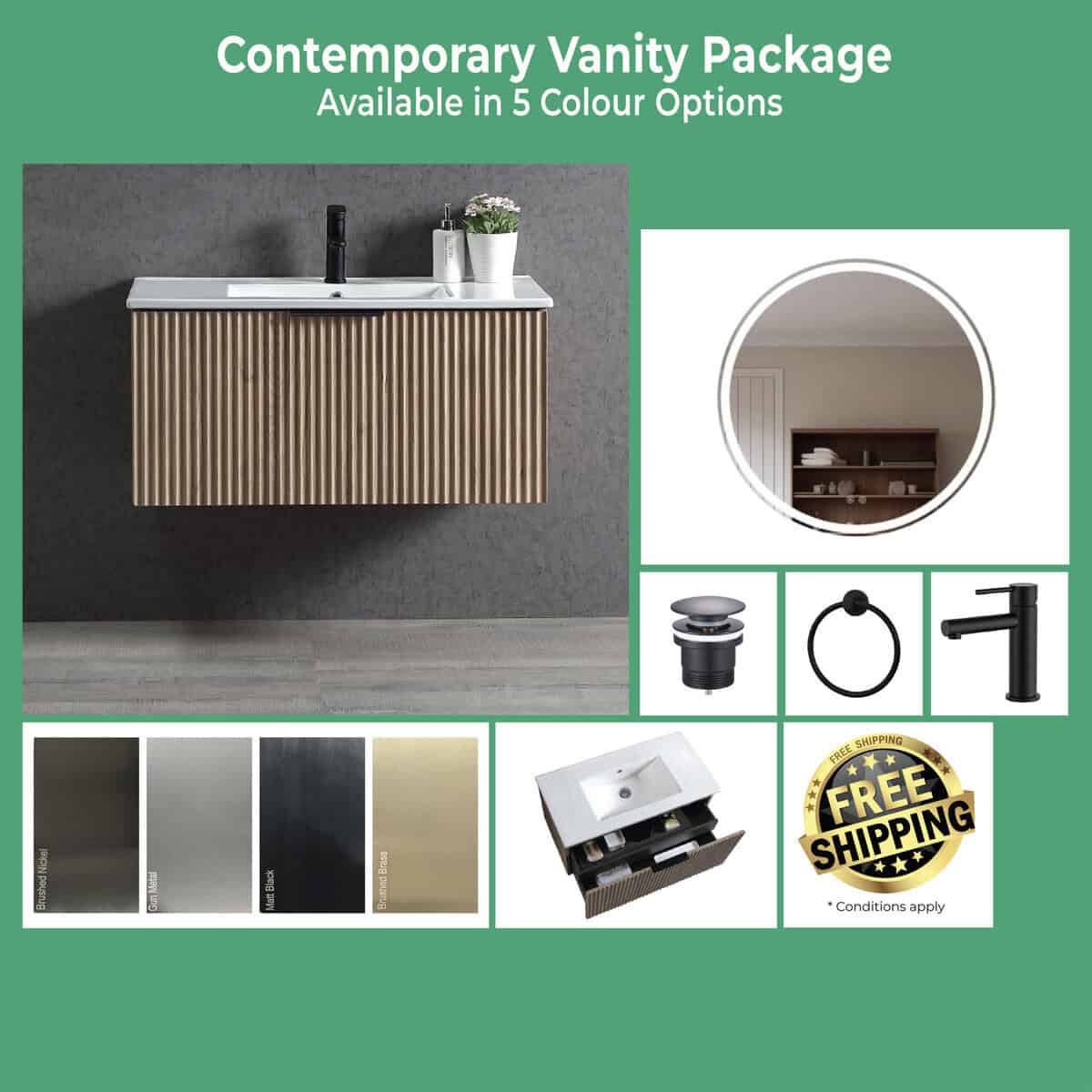 The Contemporary Vanity Package is designed for renovators, builders, and homeowners who want a complete and stylish bathroom solution without the stress of selecting individual components.