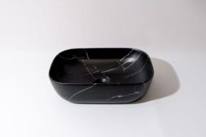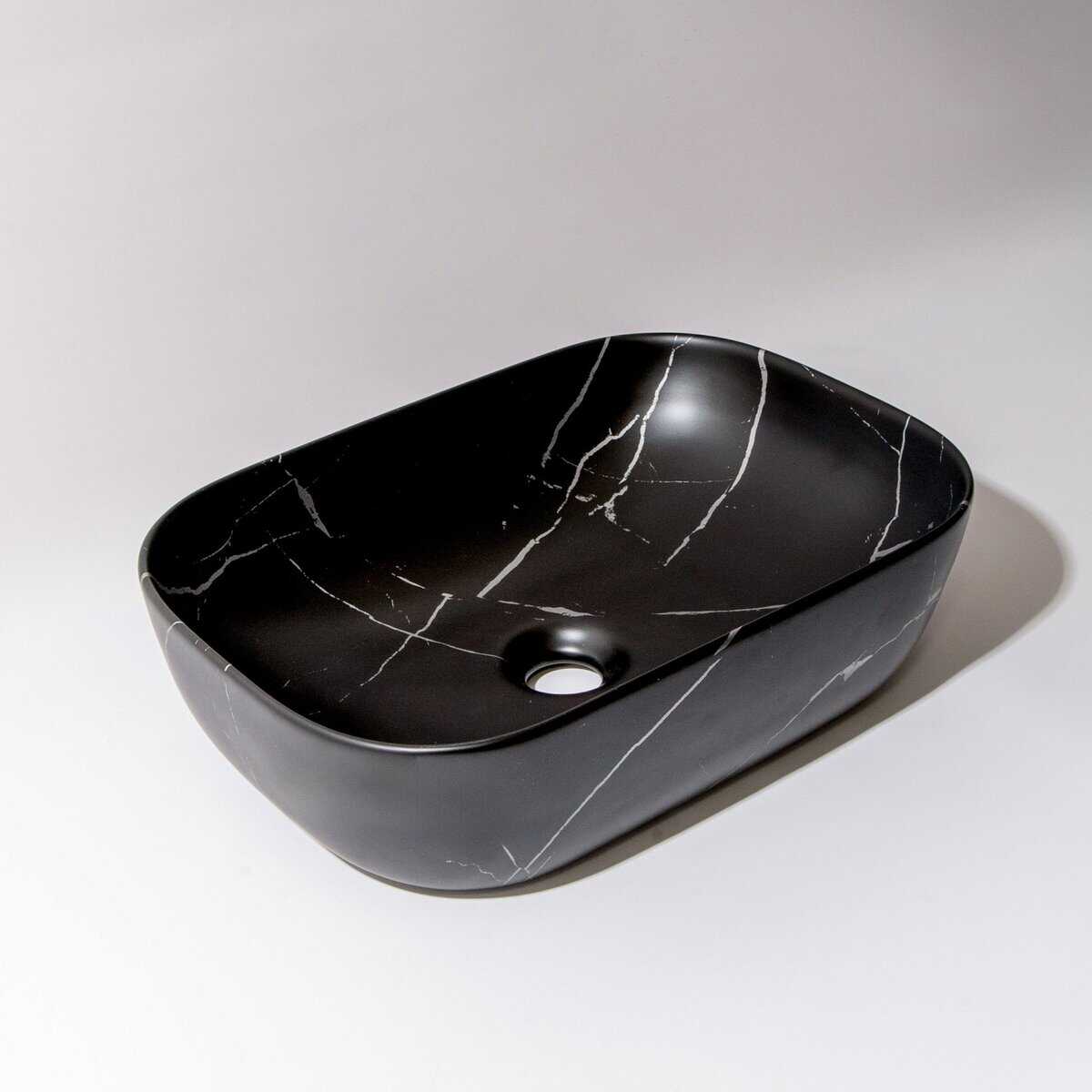 Finish: Matte Black Carrara Marble Look