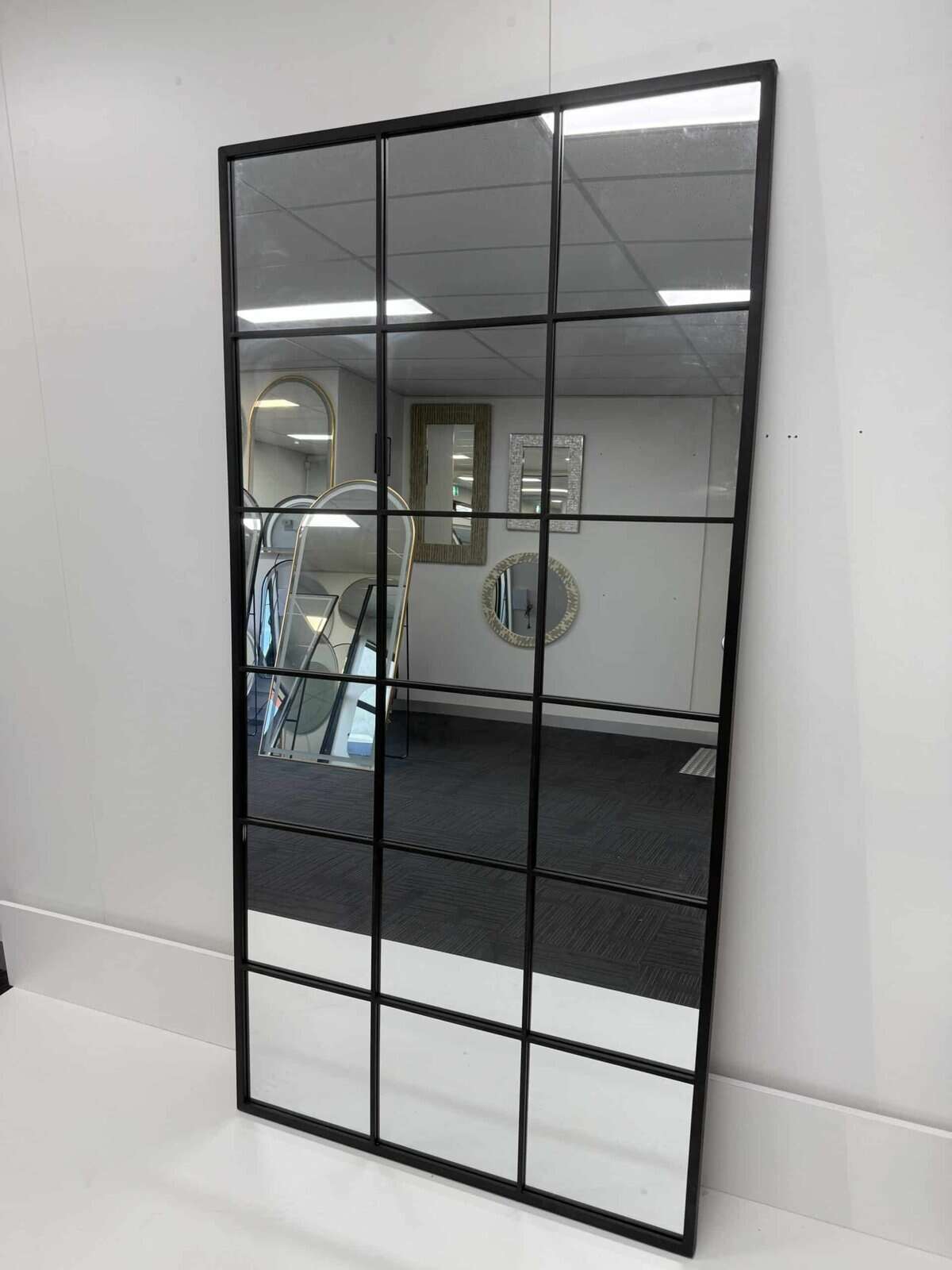 Make a bold statement with the Iron Block Grid Rectangular Mirror, designed to bring an industrial edge to contemporary spaces. Measuring a generous 200cm x 100cm, this large wall mirror features a durable black iron frame and a geometric grid pattern that adds structure and visual interest. The 4mm HD mirror ensures crisp, clear reflections, while the slim 2 cm frame width and 2.5 cm thickness balance durability with sleek design. Ideal for living rooms, bedrooms, hallways, or entryways, this mirror doubles as a functional piece and a striking decorative feature.