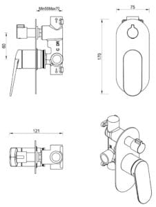 Shower Mixer with Diverter Fluted