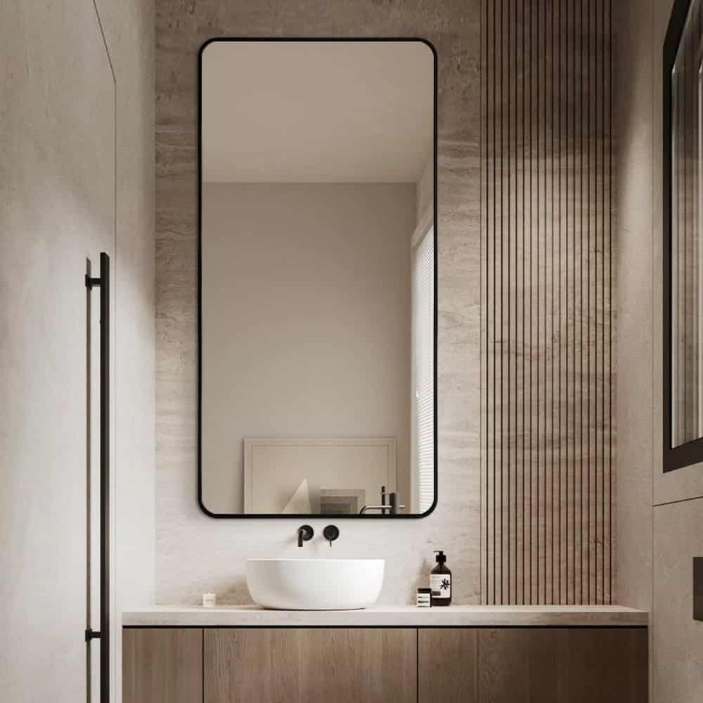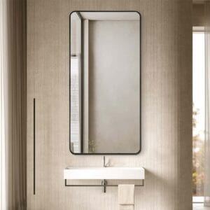Add a modern touch to your interior with this Long Rounded Wall Mirror, designed with a sleek black aluminium alloy frame and gently curved corners. Its minimalist rectangular shape blends effortlessly with a wide range of décor styles, while the 70cm x 140cm size offers generous visibility without taking over your wall space.