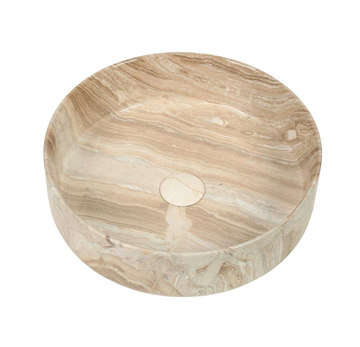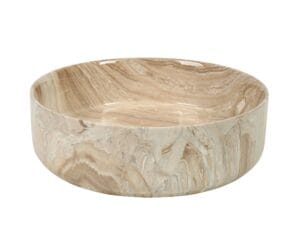 Crafted from high-quality ceramic, this 400mm round above-counter basin features a glossy stone-look finish that brings nature’s texture into a contemporary setting. Its smooth surface and sculptural form make it the perfect centrepiece for any modern vanity