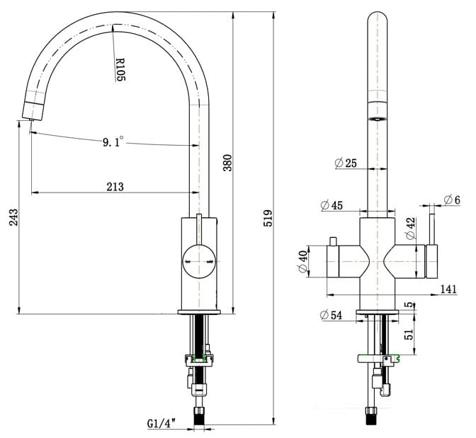Delayed water shutoff – due to internal mechanisms, the mixer requires approx. 4 seconds once handle is shut for water to clear the spout