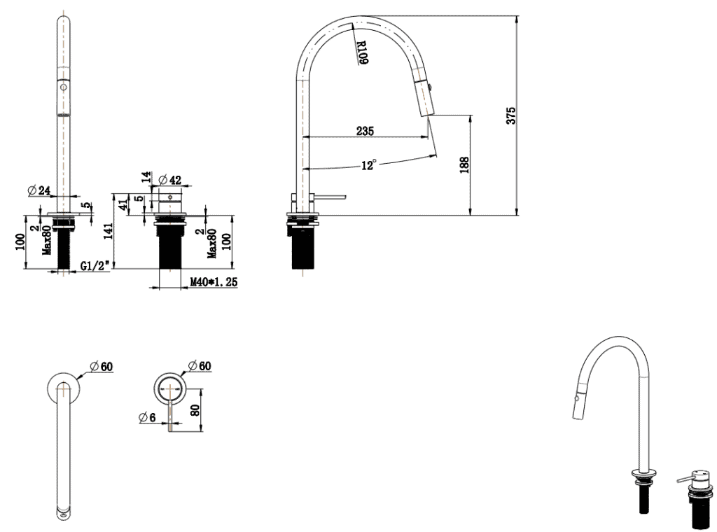 Mica Pull-Out Hob Mixer Set - Black quantity