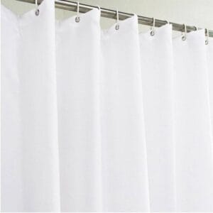 • White polyester curtain (120 g) with weighted bottom, standard drop 180 cm