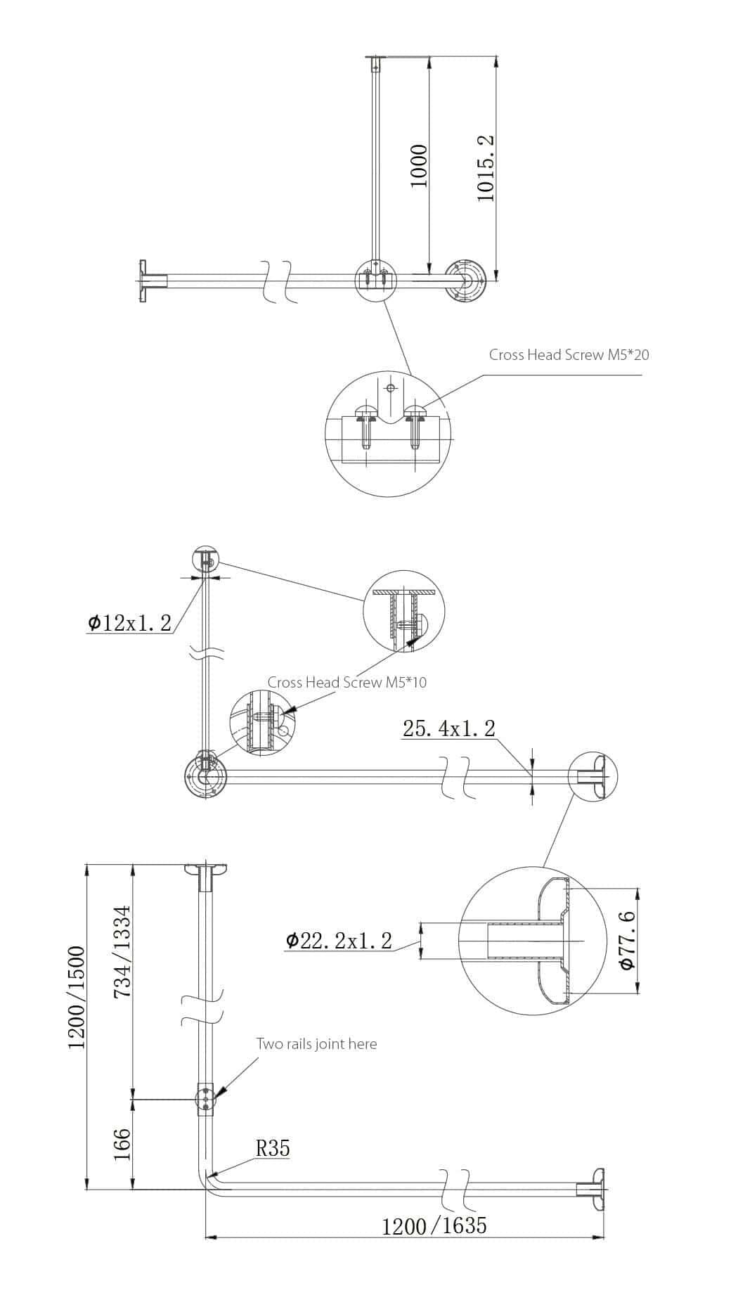 Made from 304 stainless steel, the rail features a 25 mm diameter tube engineered for stability and corrosion resistance. Adjustable at both ends, it comes with a 1 m ceiling support for added strength.