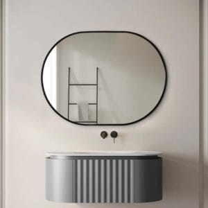 Bathroom Sophistication: Elevates bathroom aesthetics with a chic black frame and practical function.