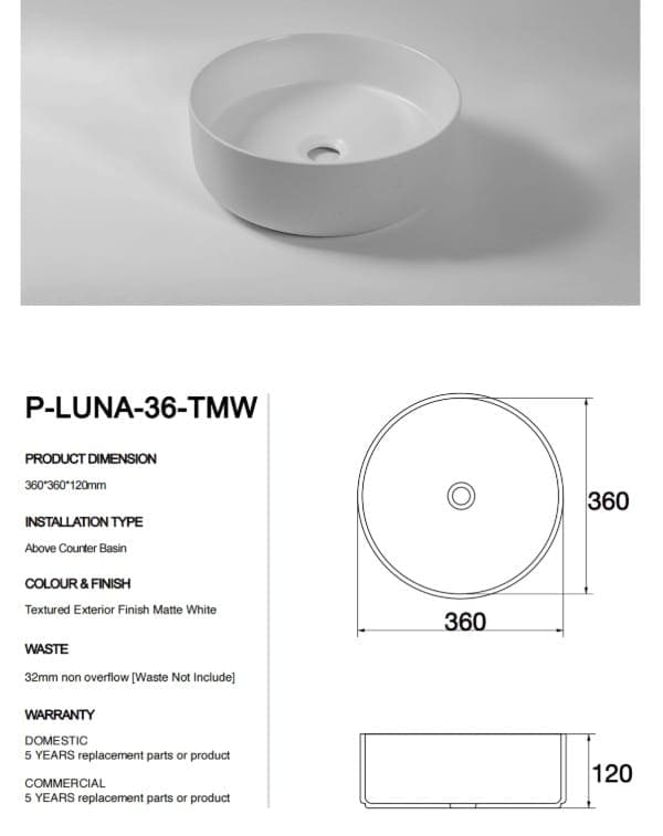 - Waste: 32mm non overflow (not included)