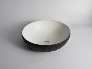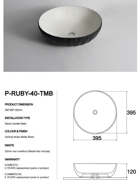 The Polar Series, the P-Ruby 40 features a refined 400mm round form inspired by the elegance of a ruby cut. Its textured matte black finish adds depth and drama, making it a bold centrepiece for modern bathrooms. Crafted from premium ceramic and fired at high temperatures, this above-counter basin offers long-lasting strength with a truly distinctive design.