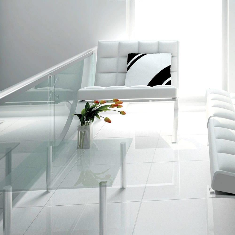 Create clean and crisp spaces with the beautiful Pearl White porcelain tiles.
