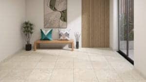 Crafted from high-density porcelain, the Perlato limestone look porcelain tile offers superior durability compared to natural limestone.