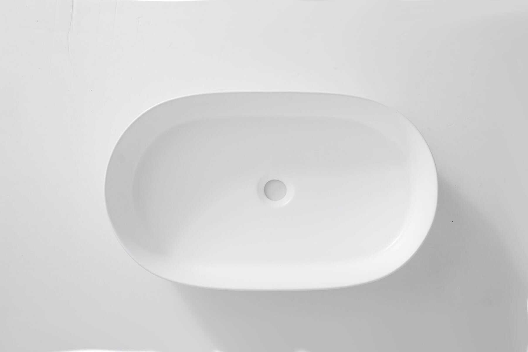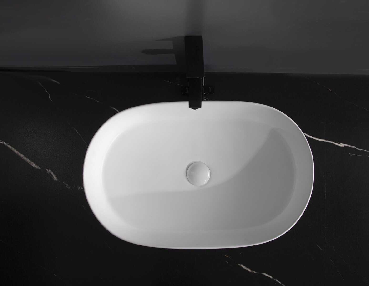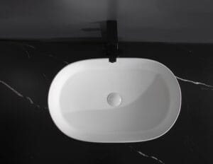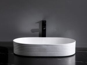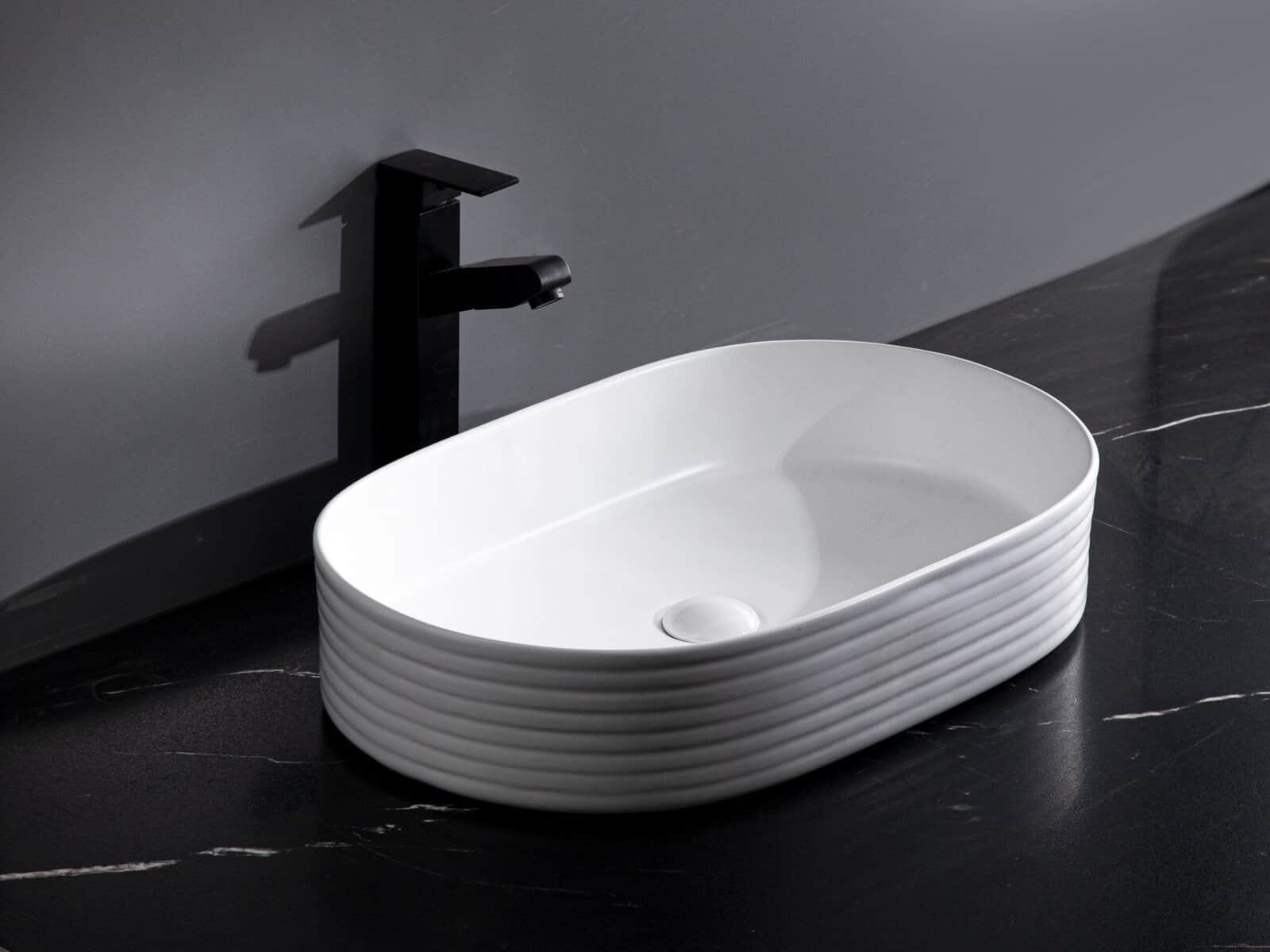 The Pill-60 Fluted basin combines a sleek pill-shaped design with subtle fluted detailing, offering a contemporary aesthetic for modern bathrooms. Crafted from high-quality ceramic with a matte white finish, this above-counter basin provides both durability and elegance. Its generous dimensions make it a practical choice for various bathroom layouts