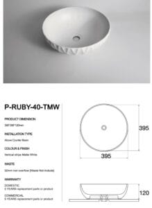 - Waste: 32mm non overflow (not included)
