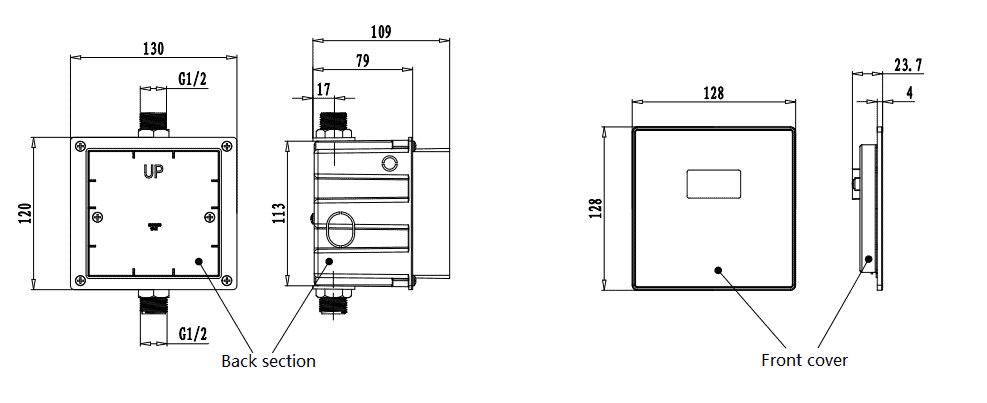 Installation Instruction: Height of sensor to floor 1200 mm / Horizontal distance to user 650 mm