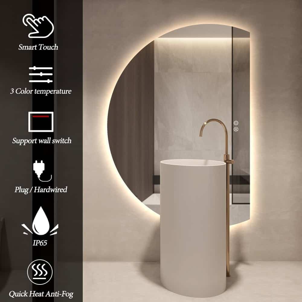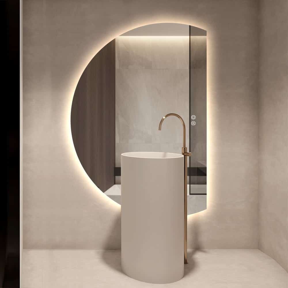 Bring style and smart function into your home with the Right Cut Moon LED Wall Mirror, designed for both elegance and practicality. With its unique right-cut moon silhouette and frameless structure, this mirror becomes an instant statement piece. Measuring 91cm x 130 cm, it features copper-free 5mm silver mirror glass for a clear, high-definition reflection. The integrated LED lighting is dimmable with three colour temperature options—warm, neutral, and cool white—making it suitable for a variety of moods and settings.