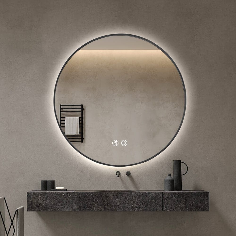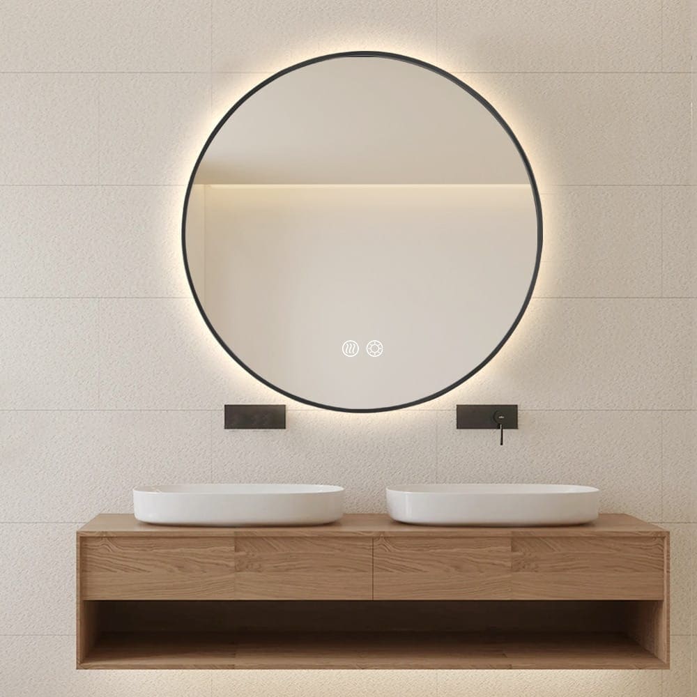 Round LED Mirror 80cm Black Framed Backlit Defogger Dimmable