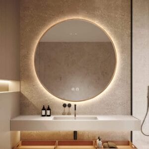 The BestWorld Round LED Mirror with a gold bevel frame and backlit design effortlessly combines luxury with advanced lighting technology. Its elegant bevelled edge and golden halo lighting create a warm and sophisticated ambiance, ideal for modern and upscale interiors. Crafted with a 5mm copper-free, environmentally friendly silver mirror, this piece not only delivers clear reflections but also supports sustainable choices. With multiple size options, it’s a versatile addition to bathrooms, dressing areas, or any space requiring a stylish, functional upgrade.Key Features: