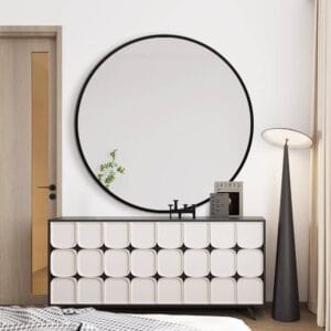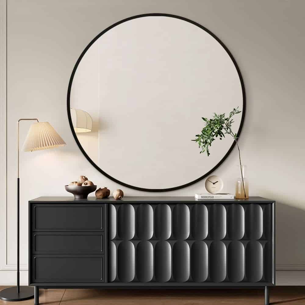 Crafted with a durable solid wood frame, this mirror combines clean modern design with a bold aesthetic. The sleek round shape and striking black edge add depth and character, making it a standout piece in any room.