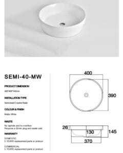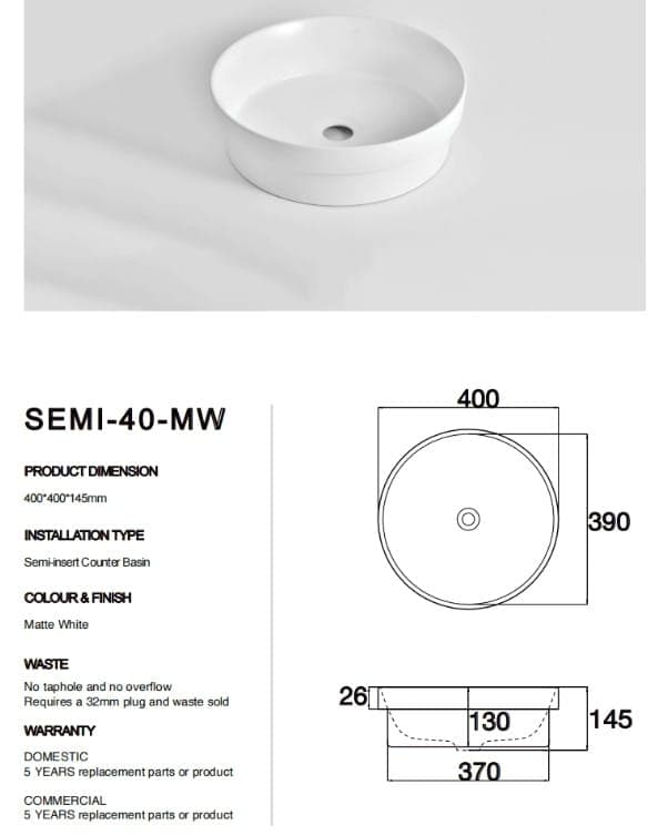 - Semi-insert counter basin