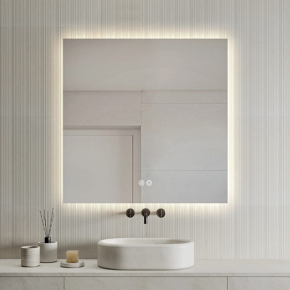 Minimalist Frameless Design – Sleek square mirror with straight corners and modern backlit illumination.
