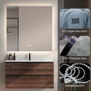 Upgrade your interior with the BestWorld 60cm x 60cm Square Frameless LED Mirror – a modern backlit mirror crafted for clarity, elegance, and function.