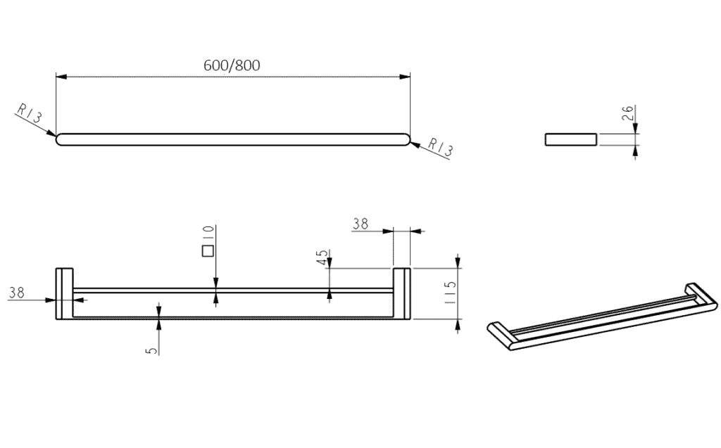 JESS 750mm Double Towel Rail – Brushed Nickel